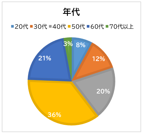 今回の調査で回答いただいた525名の生活保護受給者の方々の年代は以下の通りです。