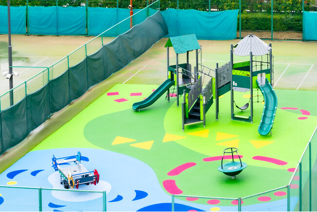 今回のリニューアルでは、屋外エリアに、大阪・関西万博「光の広場」で使用されていたデンマーク・コンパン社製の「グリーンライン」シリーズ2基を含む遊具3基を新たに導入。「グリーンライン」シリーズの遊具は、海洋廃棄物や使用済み繊維をリサイクルしたパネルや支柱を採用し、製造時の二酸化炭素排出量削減にも配慮したエコフレンドリーな設計が特徴です。