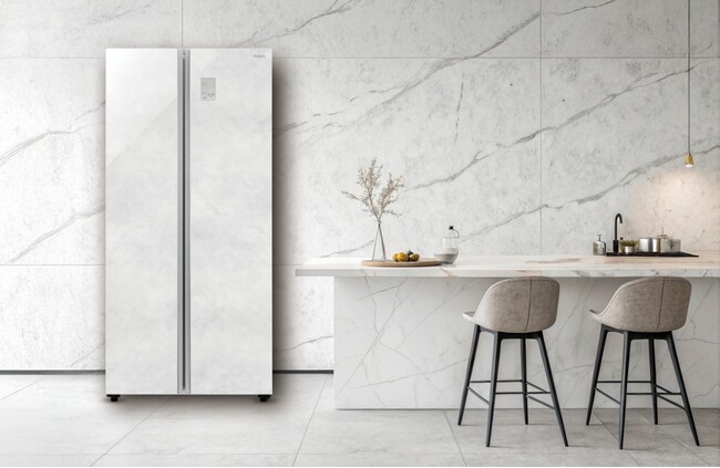 Side by Sideは、特に欧米では定番のスタイルで、庫内を縦に2分割し右側に冷蔵室、左側に冷凍室を配置した、シンプルかつダイナミックなレイアウトが特長の冷蔵庫です。扉は全面フレンチドアで中央から左右に開くので、ワンアクションで庫内を上から下まで一気に見渡すことができます。薄型設計(庫内奥行約51cm)のため最上段の奥まで手が届きやすく、ドアを開けても省スペースで、キッチンにすっきり収まります。[画像2: https://prcdn.freetls.fastly.net/release_image/45454/155/45454-155-0dfdd688e979302f129d040b6ccaaa5d-2244x2700.jpg?width=536&quality=85%2C75&format=jpeg&auto=webp&fit=bounds&bg-color=fff ]
