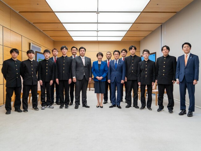 2025年12月25日、今年の4月から9月にかけて開催された第三回全国高校生政策甲子園で最優秀チームに選ばれた岐阜県立岐阜高等学校(所在地:岐阜県岐阜市大縄場3-1)の生徒4名と、大阪府立鳳高等学校(所在地:大阪府堺市西区原田150)の生徒3名が、高市早苗内閣総理大臣へ表敬訪問を行いました。