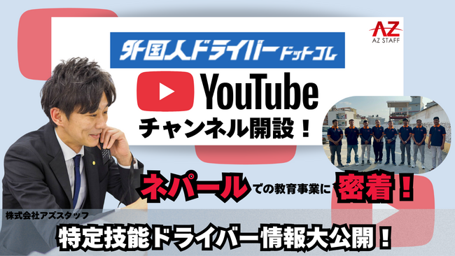 株式会社アズスタッフ(東京都新宿区)では、ネパールにて手掛ける特定技能ドライバ―の教育事業の様子や現地面接などに密着したYouTubeチャンネルを開設。現地のリアルな情報を配信している。