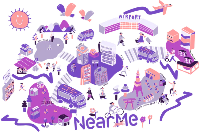 「NearMe」は、独自のAIを活用した最適なルーティングで、出発地から目的地までの移動をドアツードアで結ぶタクシーのシェアサービスです。その中でも、空港とその周辺の都市部を結ぶ空港送迎型の『エアポートシャトル』は、2019年8月のサービス開始から、 多くの方にご利用いただき、累計予約人数125万人※1を達成しました。現在は、全国16の空港※2(羽田空港、成田空港、伊丹空港、関西空港、新千歳空港、中部国際空港、福岡空港、那覇空港、旭川空港、帯広空港、青森空港、仙台空港、静岡空港、南紀白浜空港、徳島空港、北九州空港)と、空港周辺の都市部でご利用いただくことができます。対象エリアであれば、出発地となるご自宅から空港、そして空港から最終目的地まで一気通貫でつながるため、公共交通機関の乗り換えがなくなるなど、ストレスフリーな移動体験を提供することができます。また、貸切送迎サービスや、東京都と千葉県全域のゴルフ場と東京都23区内を結ぶゴルフシャトルなど、シチュエーションに応じて様々な移動のニーズに対応するための各種サービスを展開しています。