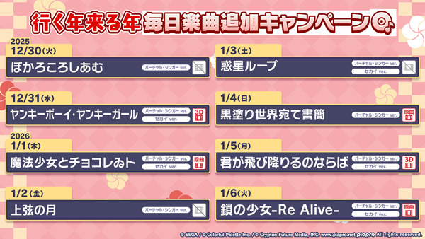■「行く年来る年毎日楽曲追加キャンペーン」開催!