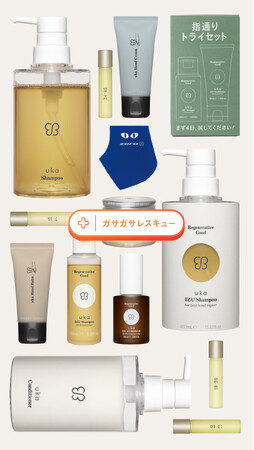 ukaイズシャンプー&コンディショナー(for hair bond repair / for damaged hair)、uka イズクロモジリセラムフォースカルプ、uka ハンドクリーム、uka ハンドバーム、uka ヒールモイスチャーメアリー、ukaモイスチャライジングジェルライスジュース、uka ボディ&フットバームハッピーワーク、uka ネイルオイル(限定品は除く)、