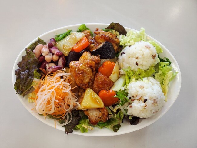 ベースの野菜には、玉ねぎの甘みと黒酢の酸味が絶妙なドレッシングをセレクト。一皿の中で食感と風味の重なりを楽しめる、まさに「多彩」な一皿です 。