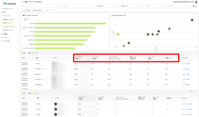 株式会社Definer(本社:東京都千代田区、代表取締役:阪本健太郎)は、特許技術を活用した「SANUS(上場監査クラウド)」の新機能として、1週間あたり、数千件~数万件の従業員の活動履歴をAIマネージャーが分析。ワークフローや働き方の効率性、コミットメントを数値化して、生産性を可視化。