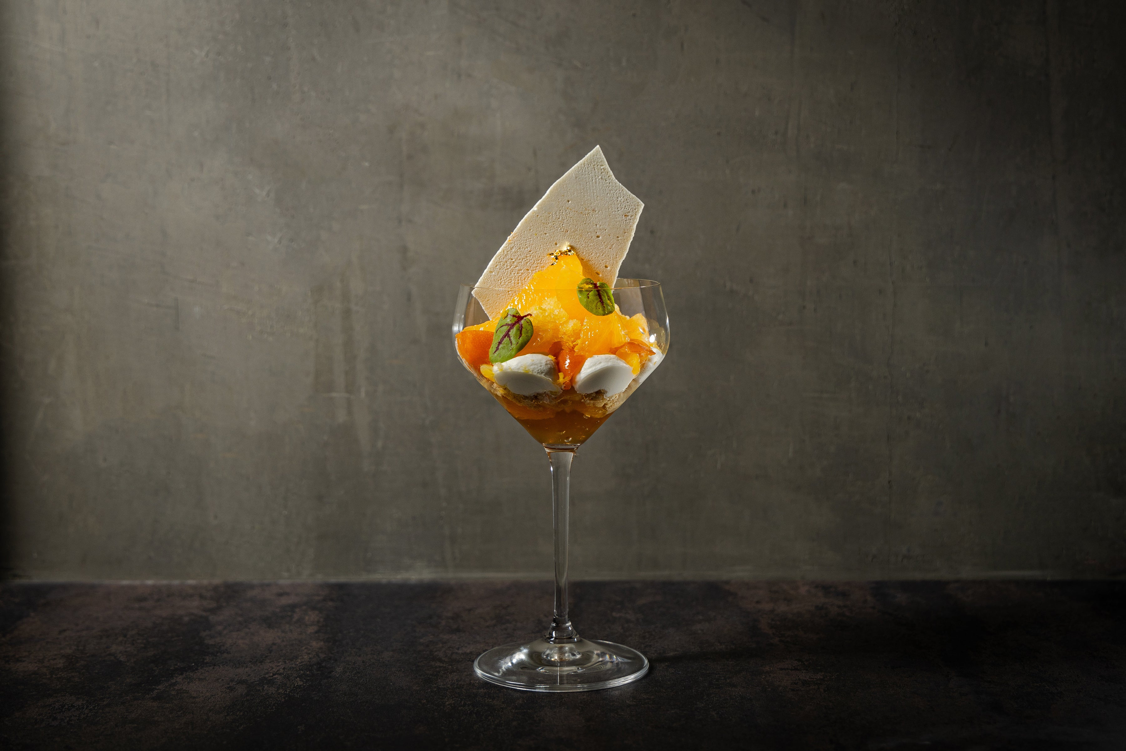完全会員制パフェバー「Remake easy」より、人気パフェがリバイバル。愛媛県産「宝紅まどんな」やゆず、日本酒「作」の新酒を重ねた1月限定パフェ『和柑橘とゆずと新酒のバヴァロワパフェ』を提供!