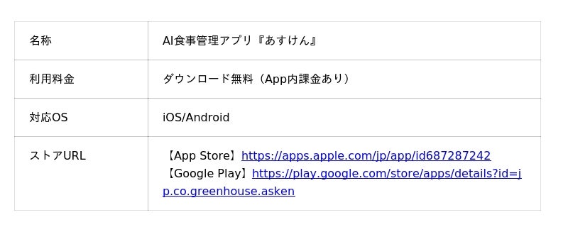 食事管理アプリ『あすけん』公式サイト:https://www.asken.jp