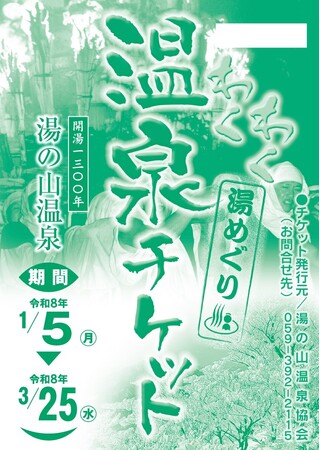 三重県菰野町・湯の山温泉では、お得に入浴できる「わくわく温泉チケット」の販売を2025年12月25日(木)より開始しました。