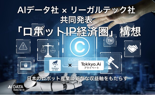 企業データとAIの利活用カンパニー、AIデータ株式会社(本社:東京都港区、代表取締役社長 佐々木隆仁、以下AIデータ社)と、リーガルテック株式会社(本社:東京都港区、代表取締役:平井 智之、以下リーガルテック社)は、日本のロボット産業に新たな収益モデルをもたらす「ロボットIP経済圏構想」を共同で発表する。