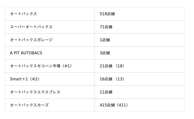 ご参考:オートバックスグループ国内店舗数 計1,056店舗