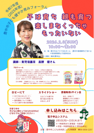 豊中市は、令和8年(2026年)2月8日(日)に、「子ども健やか育みフォーラム」を開催します。
