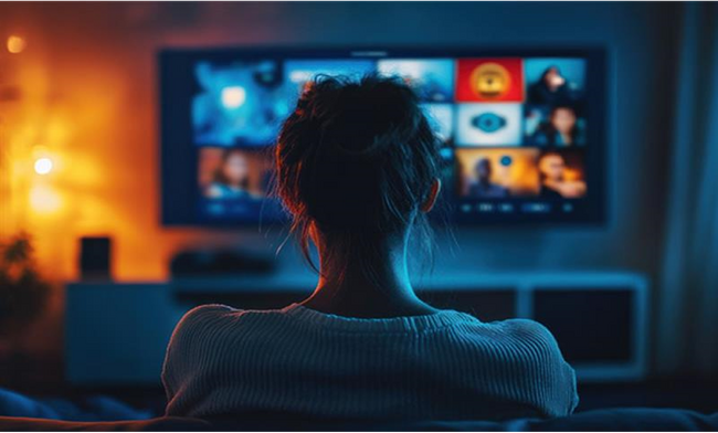 「自宅のみ」59%+「自宅・自宅以外の両方」23%。人気ジャンルは映画・ドラマ(25%)、音楽(14%)、読書(12%)。