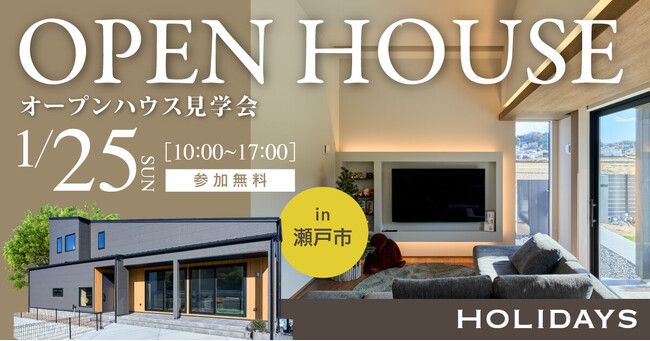 愛知県で注文住宅事業を展開する株式会社sumarch(本社:愛知県名古屋市中村区、代表取締役:鳥居儀彰、以下HOLIDAYS)は、オープンハウス見学会を2026年1月25日(日)に、愛知県瀬戸市にて開催いたします。