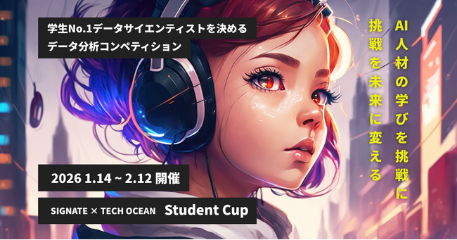 理系学生特化の採用支援を行う株式会社テックオーシャン(本社:東京都千代田区、代表取締役:上土 達哉、以下 テックオーシャン)は、AIによる社会変革(AX)を支援する株式会社SIGNATE(本社:東京都中央区、代表取締役社長:齊藤 秀、以下 SIGNATE)と共同で、AI・データサイエンス領域に挑戦する学生を対象とした実践型コンペティション「SIGNATE × TECH OCEAN Student Cup 2025」 を開催いたします。