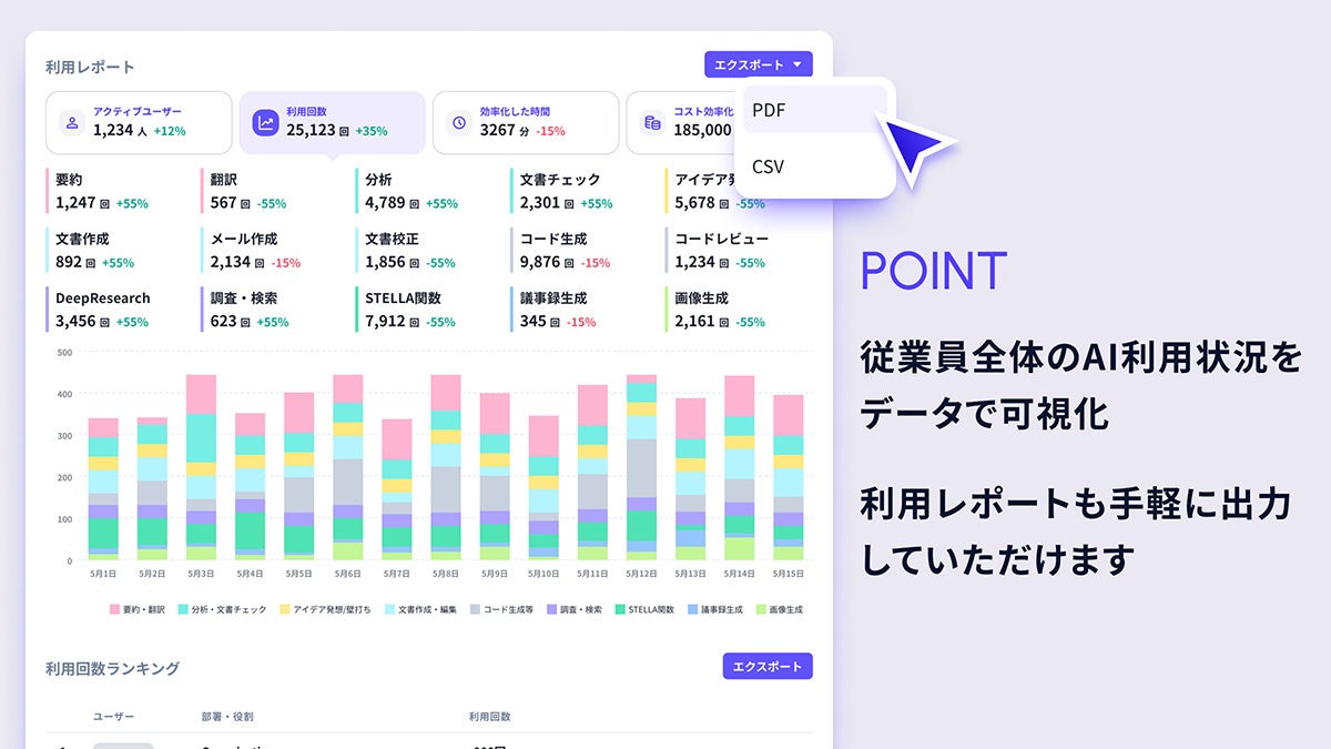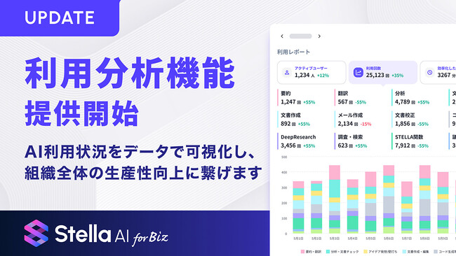 「Stella AI for Biz」、従業員の利用状況を可視化する分析機能を提供開始
