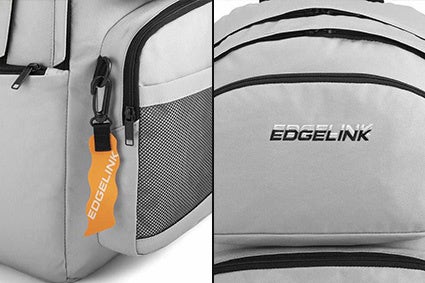 バッグ正面に躍動感溢れる「EDGELINK」の刺繍ロゴをあしらい、チャームにはスケートボードのスピード感を表現したウェーブデザインを採用しました。