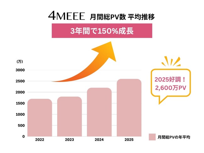 アラサー女性向けメディア『4MEEE』、月間総PV数が2,600万PVを突破!