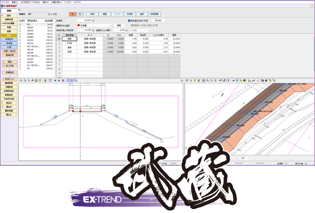こうした状況を受けて、今回リリースする「EX-TREND武蔵 Ver.25」では、3次元設計データ作成機能や法面展開図機能を中心に機能強化を行うことで、ICT施工における業務を効率化し、生産性向上を実現いたします。また、最新の電子納品各基準・要領にも対応し、安心してご利用いただける環境を提供してまいります。