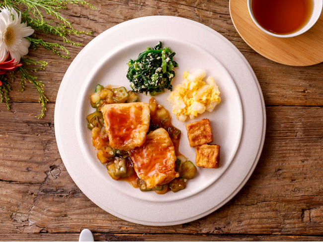 今回新登場する「黄金かれいのさっぱり旨だしあん」は、ふっくらとした黄金がれいに、さっぱりとした味わいの旨だれあんを合わせました。だしの旨味とほんのりレモンの香りで、軽やかさと満足感を両立。添え野菜のオクラやじゃがいもと一緒に食べると、食感の違いも楽しめます。
