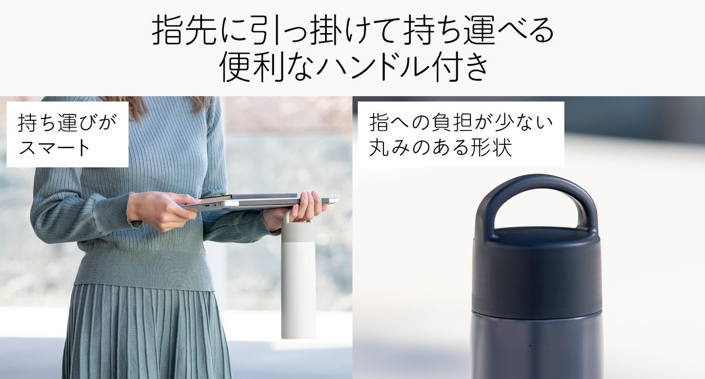 ステンレス製卓上用品・キッチン用品の企画・製造・販売を行う株式会社アトラス(本社:東京都八王子市 代表取締役:林一郎)は、日々の暮らしに心地よく馴染む『ベーシックプロダクツ ハンドル付きスクリューボトル』を12月29日(月)より発売しました。 本製品は、スマートに持ち運べるハンドル付きのデザインが特徴。指に引っ掛けて楽に運べるため、荷物が多い時やオフィス内のちょっとした移動にも便利です。スポーツ飲料にも対応しており、ワークアウトなどアクティブなシーンでも幅広く活躍します。 密閉性の高いスクリュータイプのフタや、氷止め付きのなめらかな飲み口など、毎日を快適にする機能を備えています。真空断熱構造により「おいしい温度」が長持ち。丸みを帯びた柔らかなフォルムと洗練されたニュアンスカラー、少ないパーツでお手入れしやすく、使う人に寄り添う「ちょうどいい」が詰まった製品です。