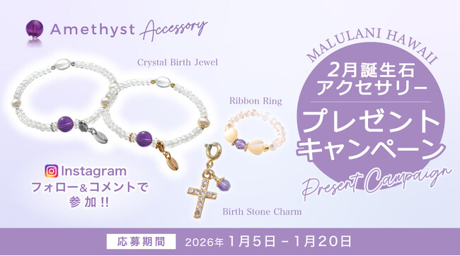 【1月限定】2月誕生石「アメジスト」アクセサリーが当たる!ハワイ発パワーストーンブランド「マルラニハワイ」にて、プレゼントキャンペーンを開催