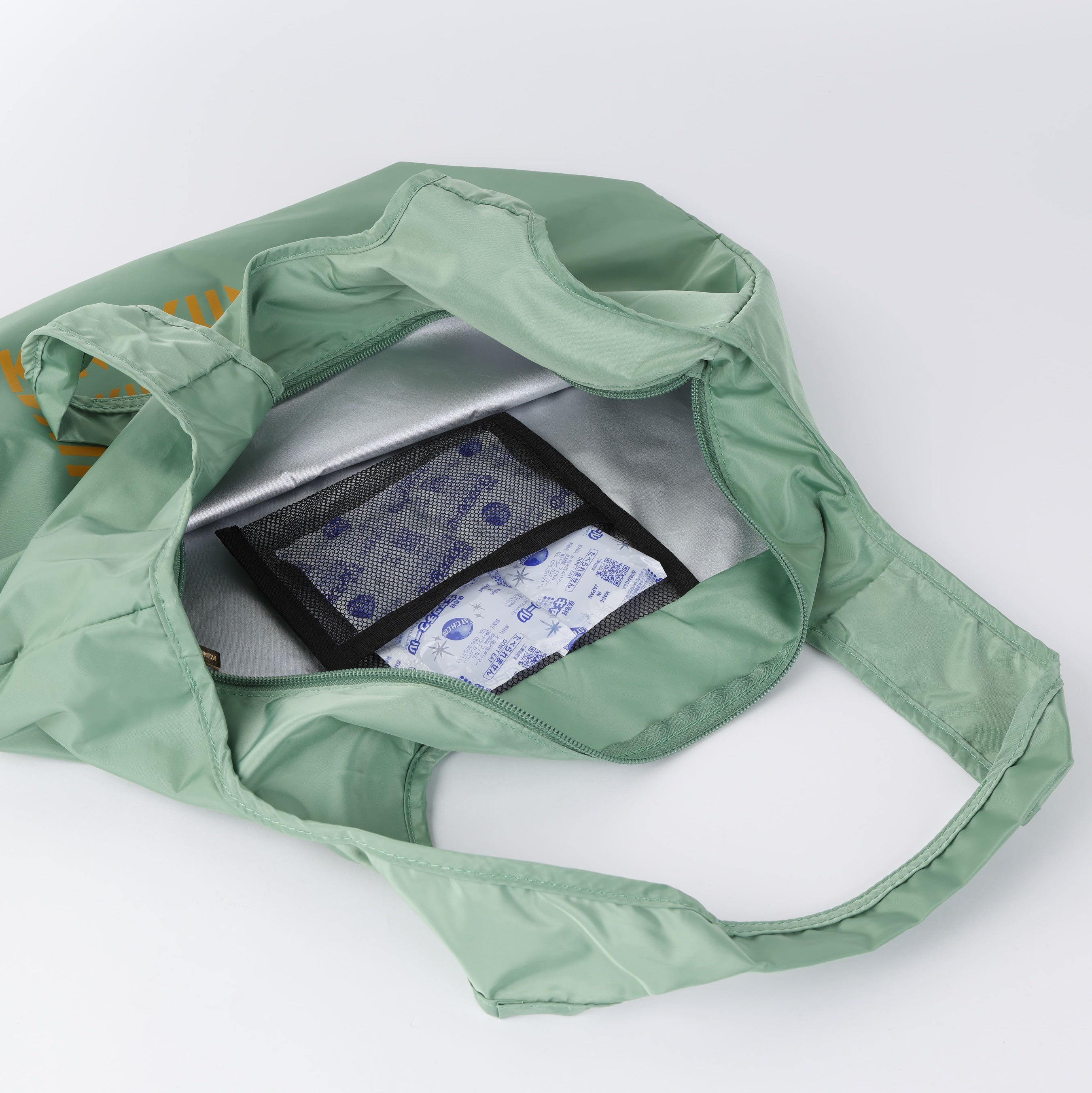機能性抜群!便利な保冷収納バッグ上部にファスナーが付いているため、中身が飛び出す心配がなく、安全に持ち運ぶことができます。バッグの内側にはメッシュポケットが備えられており、保冷剤を入れることでさらに効果的に鮮度を保つことが可能です。