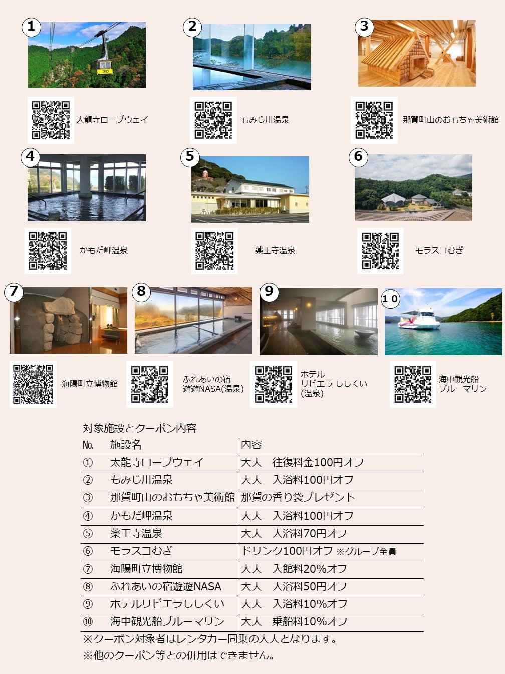 徳島県レンタカー協会、阿南市、那賀町、牟岐町、美波町、海陽町みなみ阿波レンタカーキャンペーンチラシ