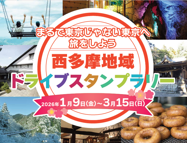 一般社団法人 日本自動車連盟(JAF)東京支部(支部長 加藤和夫)は、西多摩地域広域行政圏協議会が主催する「『まるで東京じゃない東京へ旅をしよう』西多摩地域ドライブスタンプラリー」(開催期間:2026年1月9日(金)~2026年3月15日(日))を、帝京大学産学連携推進センターおよび経済学部小笠原ゼミと連携し開催に協力します。