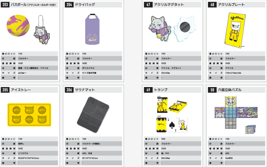 こちらは当社が制作可能なグッズの、ほんの一部に過ぎません。