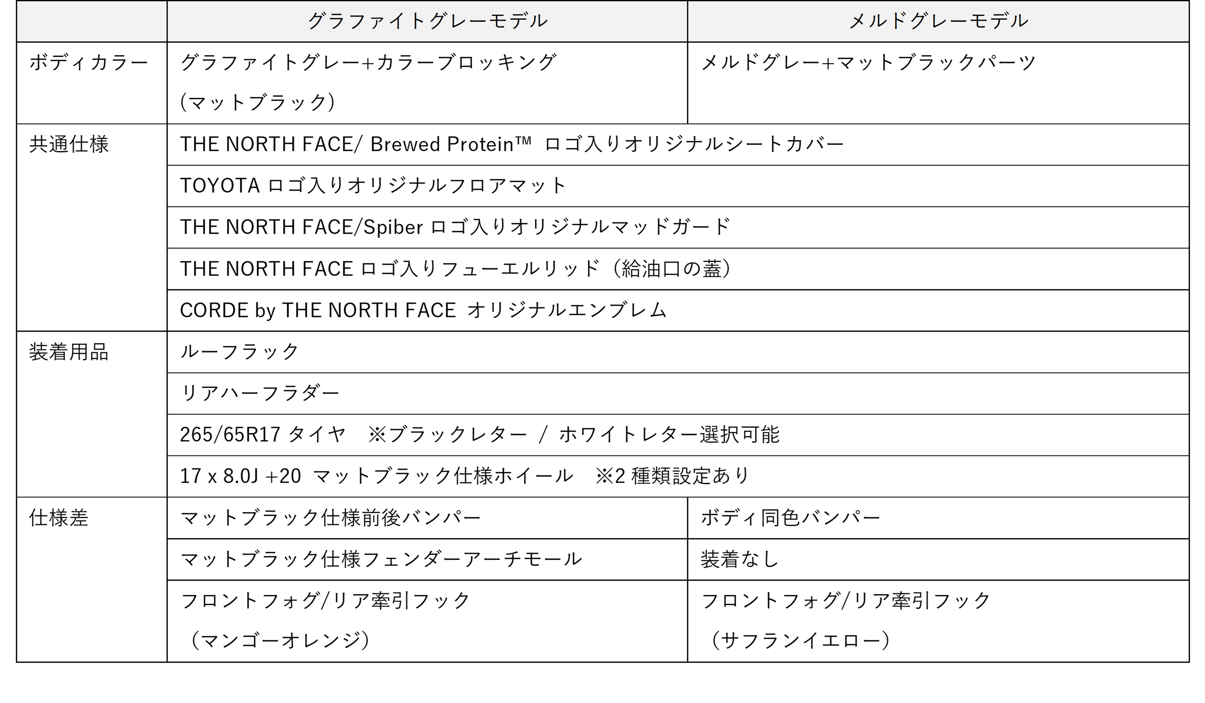 トヨタ・コニック・プロ株式会社(本社:東京都千代田区神田淡路町 2-101 ワテラスタワー、代表取締役社長:武田淳一郎、以下「トヨタ・コニック・プロ」)が、提供するスタイルドカーブランド「CORDE by<コーデバイ>」は、「THE NORTH FACE」「Spiber」とコラボレーションしたモデル