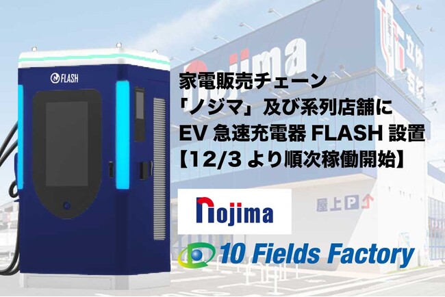 テンフィールズファクトリー株式会社、ノジマ及び系列店舗3店舗にてEV急速充電器「FLASH」設置へ― 12月3日より「ままともプラザ町田駐車場」「ノジマ相模原本店」が稼働開始―