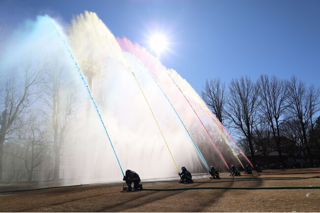 災害の最前線で活躍する消防車両の分列行進、色鮮やかな一斉放水、新春にふさわしい華やかなアトラクションなどを披露します。