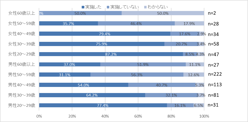・ミドルシニア層では40代の実施率が最も高い結果に