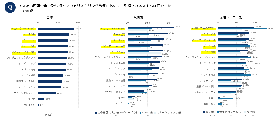 ・リスキリングの重点施策では「AI活用」が支持、データ・セキュリティなど基盤スキルも上位に