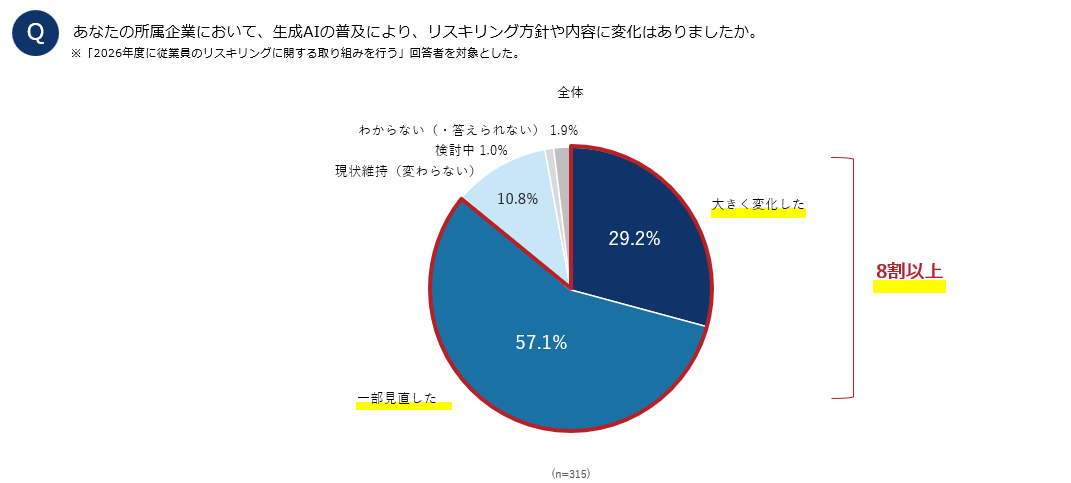 生成AIの登場をきっかけに、リスキリングのテーマや育成内容、優先領域を見直す動きが多くの企業で進んでいることが示唆されます。
