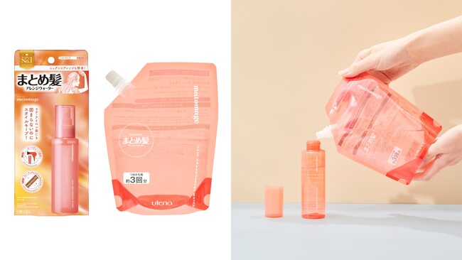 株式会社ウテナは、まとめ髪スタイリングブランド「マトメージュ」から「まとめ髪アレンジウォーター つめかえ用」を発売いたします。「まとめ髪アレンジウォーター」は、髪をまとめやすくするワックスウォーターとして2001年の発売から多くの方にご愛用いただいており、年間70万本*以上売れているロングセラー商品です。毎日使用する方や親子で使用する方も多く、お客様からは“つめかえ用”の要望が多く寄せられていました。今回、そのニーズに応える形で、つめかえ用を発売することになりました。