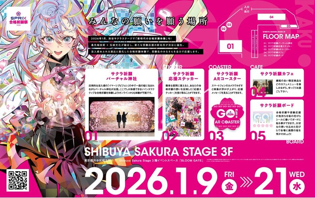株式会社スプリックス(本社:東京都渋谷区/代表取締役社長:常石博之、以下「SPRIX」)は、受験応援プロジェクトの一環として「SPRIX合格祈願祭2026」を2026年1月9日(金)から21日(火)まで渋谷サクラステージにて開催します。