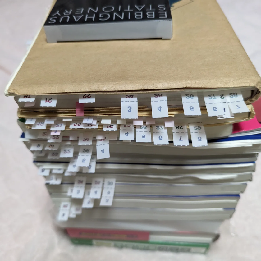 ドイツの心理学者ヘルマン・エビングハウスが発表した、エビングハウスの忘却曲線という「人が学習したことをどのように忘れるか」を示した理論を基に、知ってはいるけど実践できないエビングハウスの忘却曲線を活かした学習法を実践する為の付箋です。