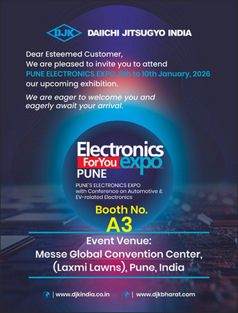 第一実業株式会社のグループ会社であるDAIICHI JITSUGYO INDIA PVT. LTD. は、2026年1月8日(木)から10日(土)まで、インドのプネで開催されるエレクトロニクス製造技術の展示会「Electronics For You Expo (EFY Expo Pune) 2026」に出展いたします。