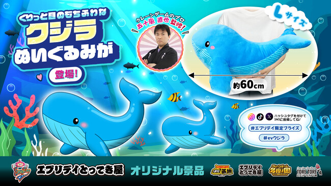 思わず抱きしめたくなる全長約60cm!くりっとした目が特徴の「クジラぬいぐるみ」がエブリデイオリジナル景品として登場