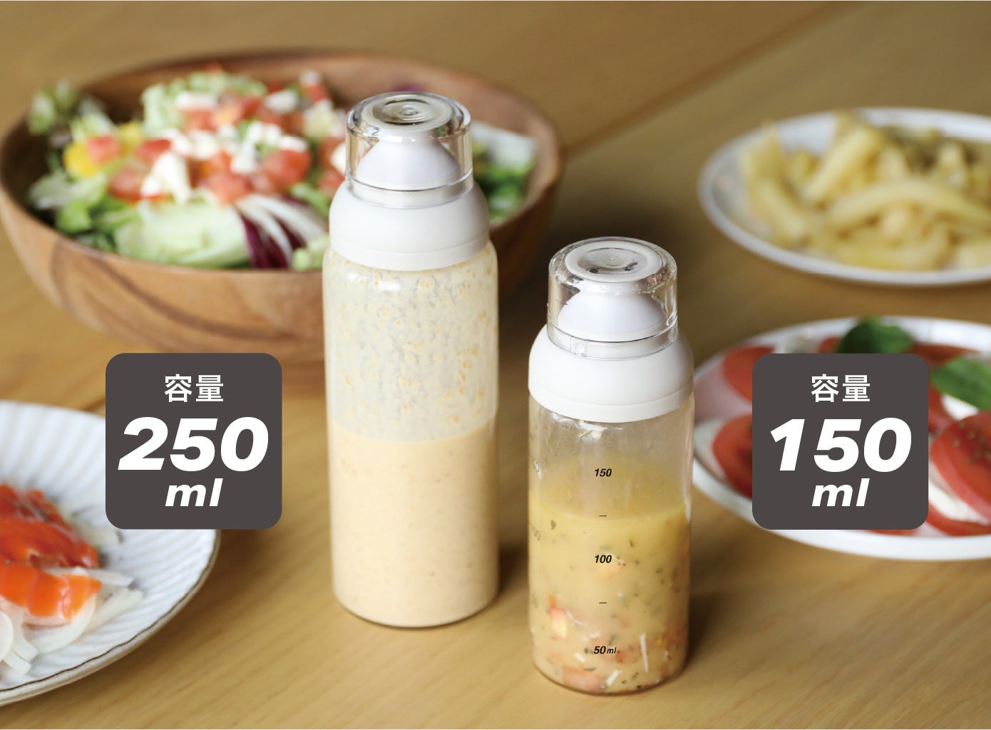 1~2人分の少量使いには150ml、家族で使うなら250mlと、ライフスタイルに合わせてお選びいただけます。