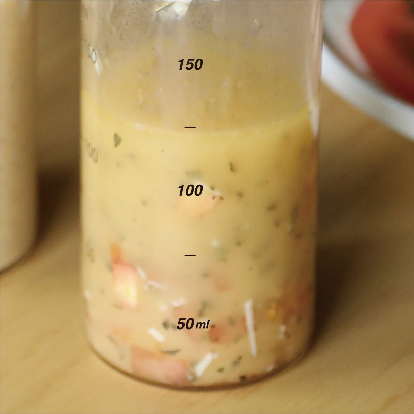 中身の色合いが美しく見えるのも、自家製ドレッシング作りの楽しさを広げてくれます。