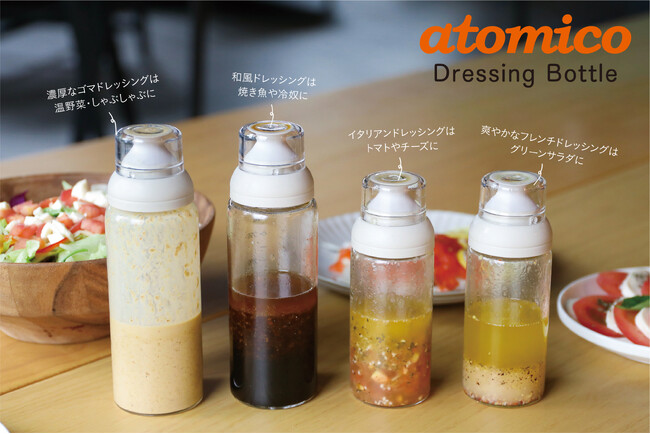 【新商品】自家製ドレッシングで食卓に彩りを。「atomico 液垂れしにくい密閉ドレッシングボトル」新発売