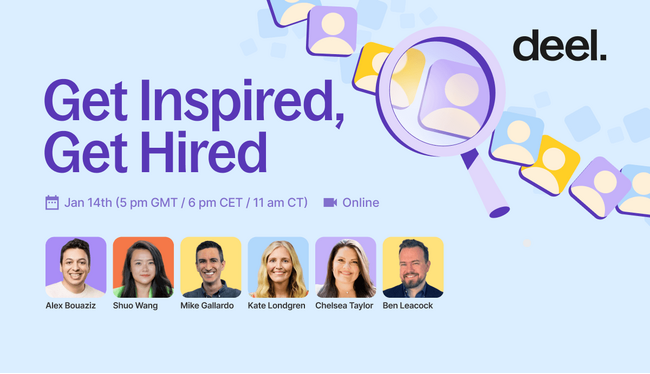 「Get Inspired, Get Hired」 は現在すべてのグローバル人材を対象に登録受付中です。詳細およびご登録については、https://www.deel.com/events/get-inspired-get-hired/をご覧ください。