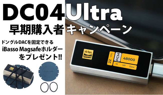 株式会社MUSINは、対象期間中に「DC04Ulltra」をご購入いただいたお客様を対象に「iBasso Magsafeホルダー 」をプレゼントする早期購入者キャンペーンを実施いたします。