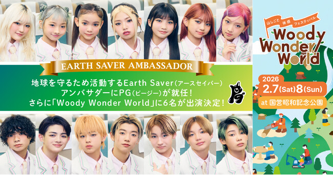- 地球を守るため活動するEarth Saver(アースセイバー)アンバサダーに14人組小中学生ヴォーカル&ダンスカンパニーPG(ピージー)が就任!01/09 13:00