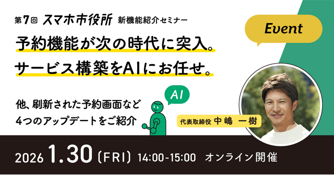 【イベント名】第7回 スマホ市役所 新機能紹介セミナー【開催日時】2026年1月30日(金)14時~15時 ※開催時間まで申込可能