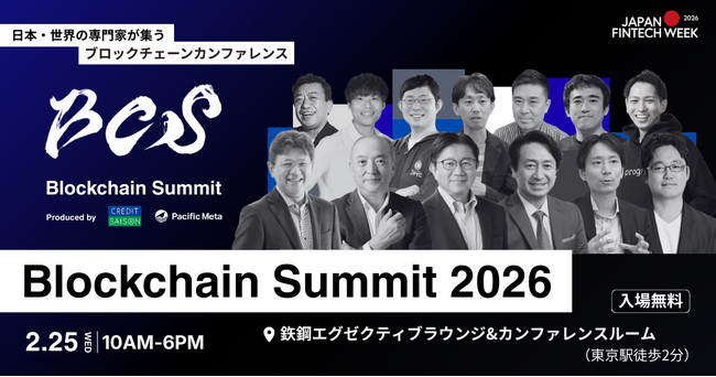 株式会社Pacific Meta(本社:東京都港区、代表取締役:岩崎 翔太、以下「Pacific Meta」)と株式会社クレディセゾン(本社:東京都豊島区、代表取締役(兼)社長執行役員 COO:水野 克己、以下「クレディセゾン」)は、2026年2月25日(水)に開催するブロックチェーンに関する国際カンファレンス「Blockchain Summit 2026 by Credit Saison and Pacific Meta」(以下「本イベント」)において、第一弾となる登壇者・セッション情報を発表いたします。