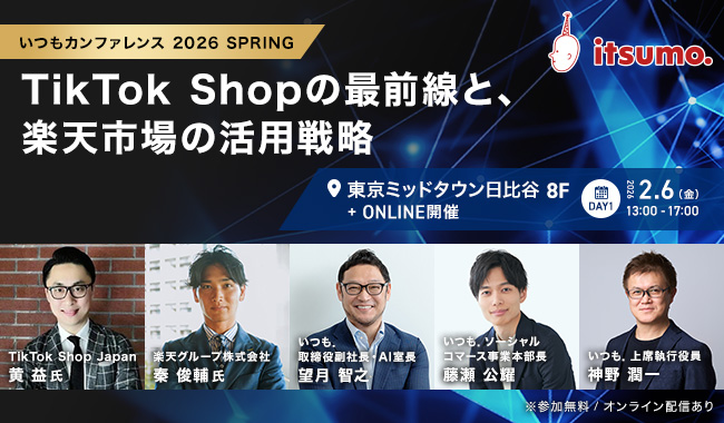株式会社いつも(本社:東京都千代田区、代表取締役社長:坂本 守、以下「当社」)は、2026年2月6日(金)13:00~17:00に開催する「itsumoカンファレンス」のDay1において、TikTok Shop攻略に特化した特別プログラムを実施します。